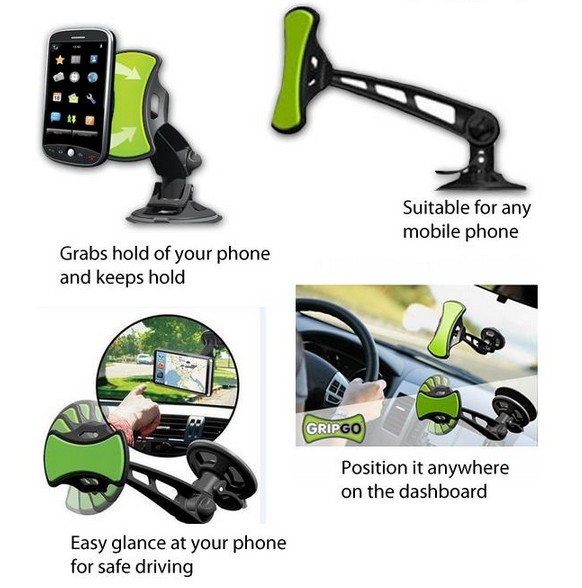 Just attached the suction cup to your windscreen or dash and GripGo grabs your phone ultra fast & easy.